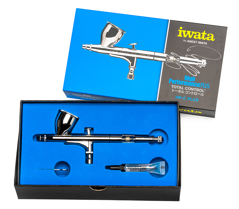 Iwata HP-C Plus - популярный аэрограф двойного независимого действия линейки High Performance Plus. Востребованность модели объясняется наличием достаточно большого литого бачка объемом 7 мл и сопла с универсальным диаметром 0.3 мм. С помощью этого инструмента можно выполнить весь спектр задач по росписи. Дополнительные преимущества аэрографа HP-C Plus - комплектация емкости крышкой, вырез на грифе для моментальной настройки иглы и регулятор подачи материала.
