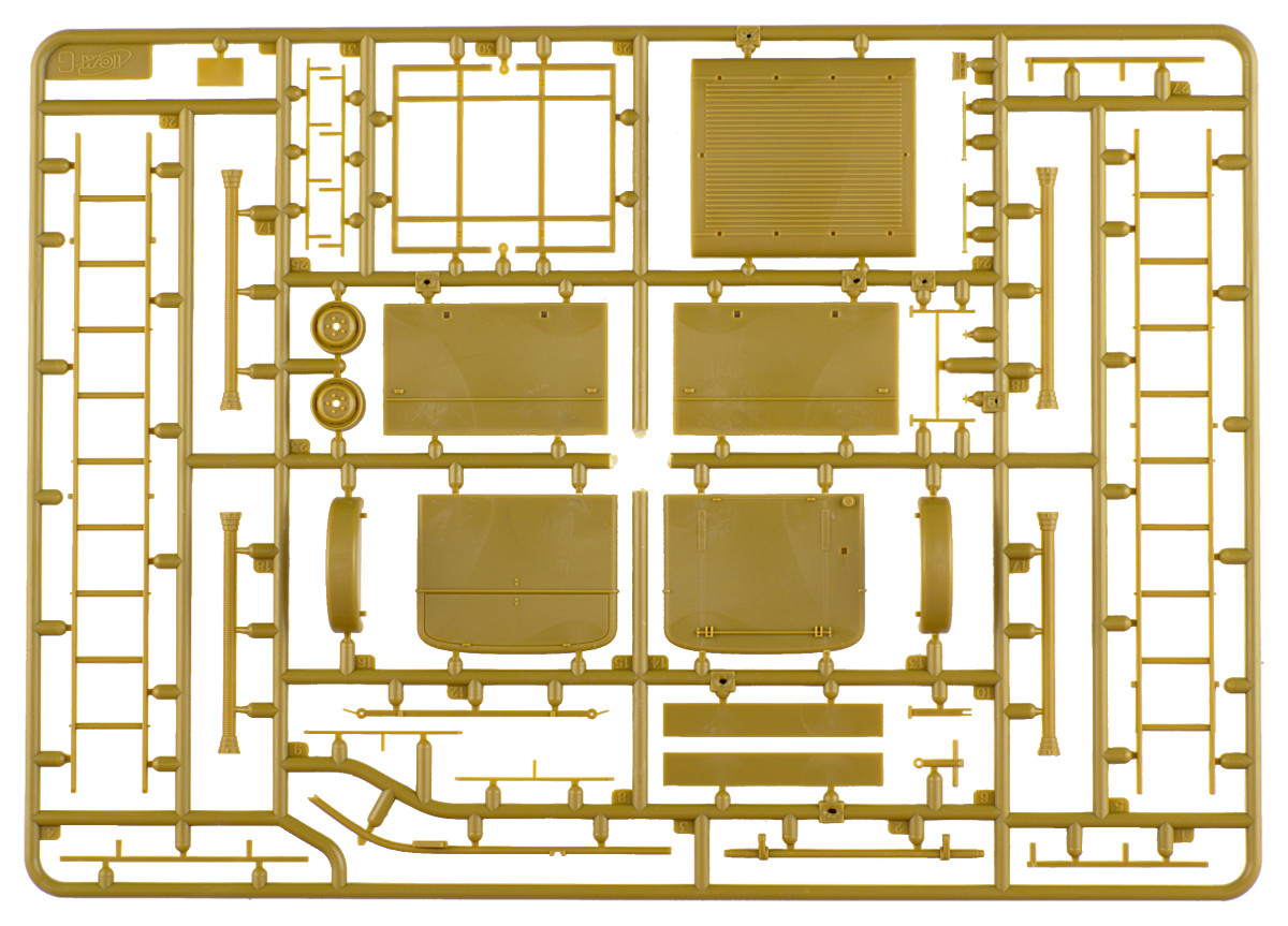 Длина модели 159 мм, 217 деталей для автомобиля и 30 деталей для прицепа, 2 варианта декалей.