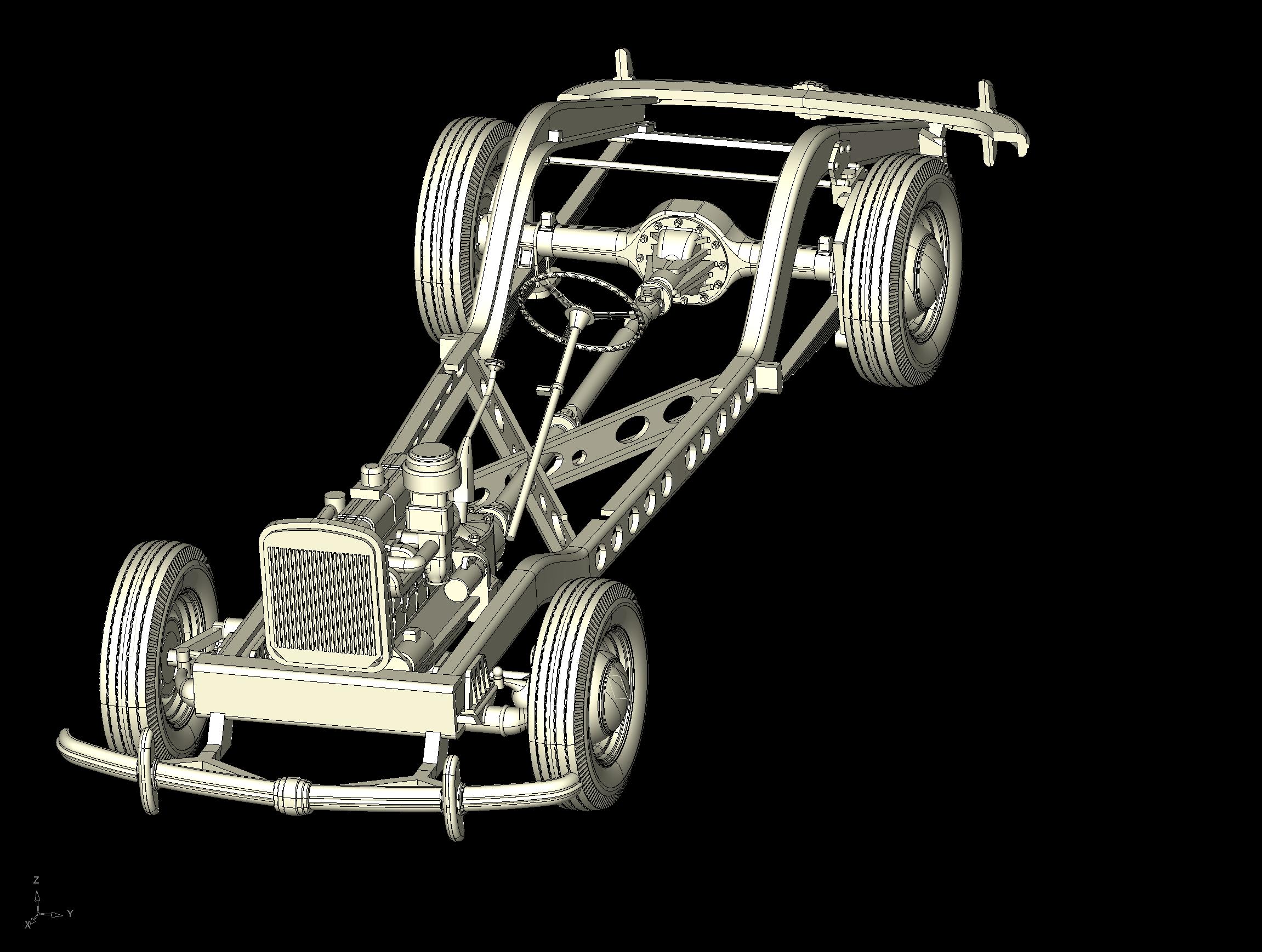 Детализированные мосты, подвеска, трансмиссия, сборная несущая рама, выхлоп выполнен отдельными деталями.